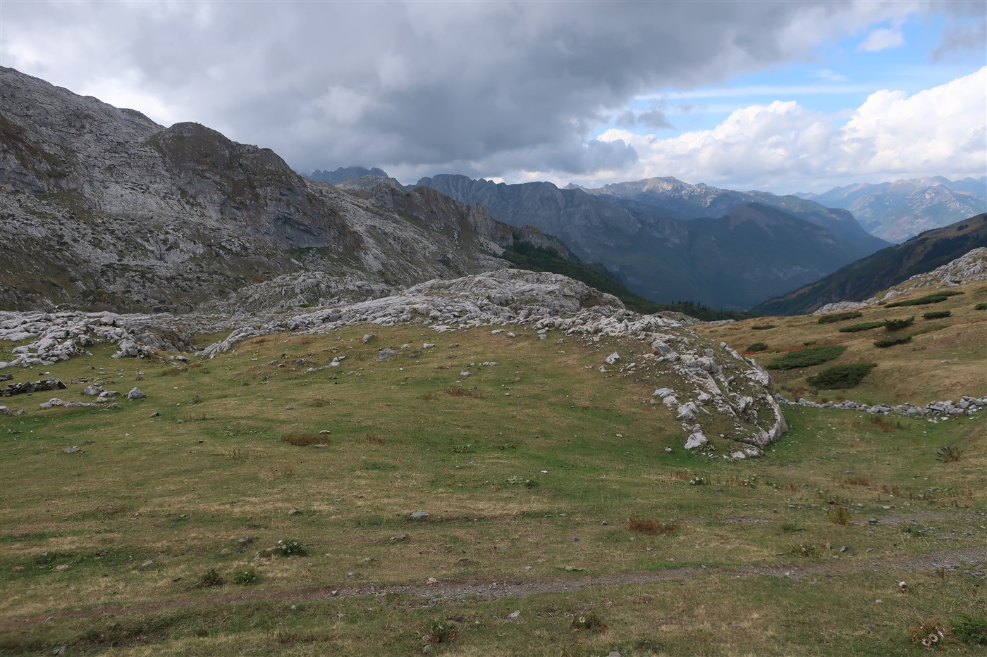 Der Anstieg war zuerst lang, aber nicht steil und somit nicht sonderlich herausfordernd. Ich gähnte eine matschige Pfütze an, die wohl dachte, sie könnte mich mit ihrem nassen Modder aus dem Konzept bringen. Doch sie hat sich mit dem Falschen angelegt, denn auf meiner Brust blitzten bereits acht von zehn Peaks of the Balkans Abzeichen. Auch den Wanderern, die ich unterwegs traf und die sich ihr Gepäck mit dem Taxi von Ort zu Ort schicken ließen, spendete ich nur ein müdes Lächeln. Kurz darauf rutschte ich aus.