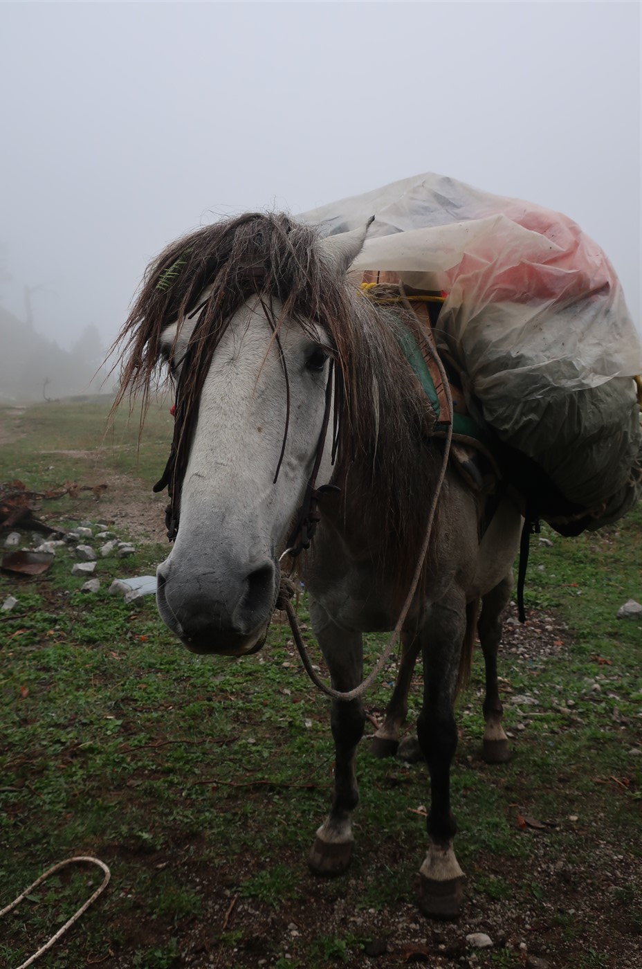Die Landschaft wurde bei immer dichter werdenden Nebel farblich minimalistischer. Aus bunter Natur wurde ein weißer Vorhang durchsetzt von den schwarzen Umrissen der Bäume und Felsen. Einzig und allein das nahe Grün der Wiese half mir es von einem Schwarz-Weiß Film zu unterscheiden. Hier in dieser Welt, die so aussah, wie ich mir eine dämmernde Zwischenwelt zwischen Leben und Tod vorstelle, begreift man schnell, wo all die örtlichen Mythen und Sagen herkommen. Ein Klackern von Hufen kündigte einen Reiter an, der aus dem Nichts herausgeritten kam, an uns vorbeitrabte und wieder im Nichts verschwand.