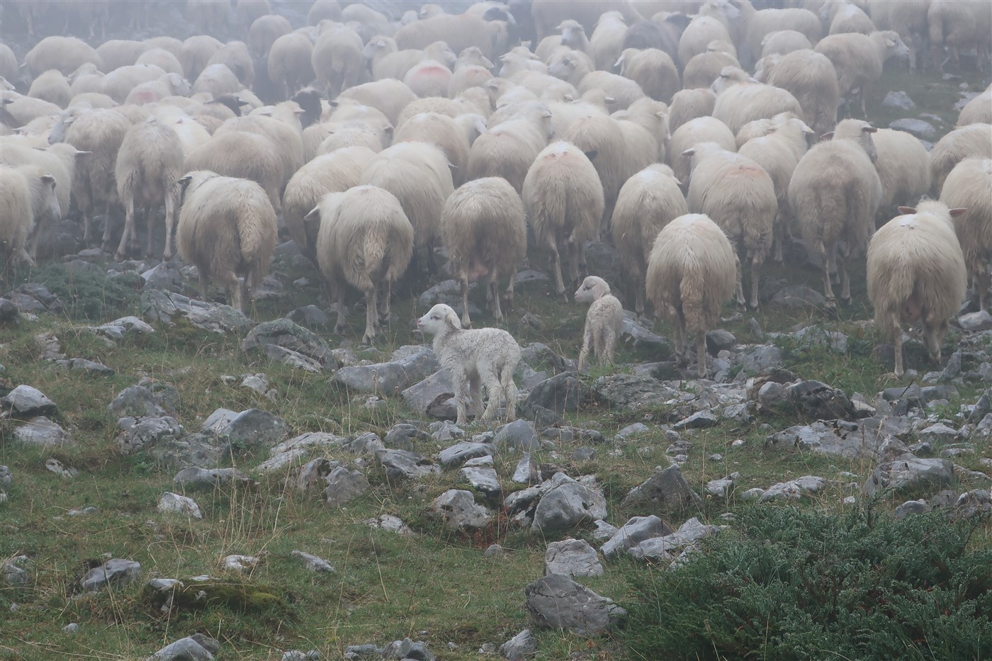 Es ging noch mal ein paar Meter nach oben. Der Wind pfiff mir unaufhörlich um die Ohren und drückte dabei die Temperaturen nahe dem Gefrierpunkt. Eine riesige Schafsherde samt kleiner Lämmer tummelte sich blökend vor uns und wurde vom magisch anmutenden Hirten in zwei Hälften getrennt, um uns den Weg freizumachen.