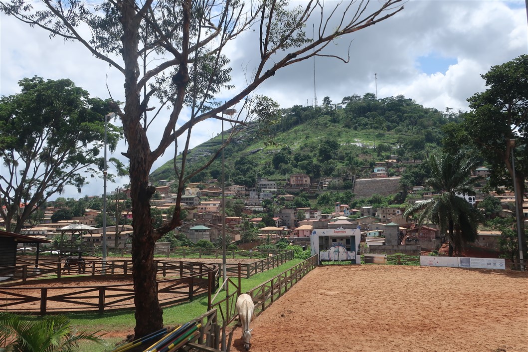 Der Hügel, den ich aus Hochachtung für sein Panorama doch schon als Berg bezeichnen möchte, lässt sich vom Nobelquartier Bastos begehen. Nobelquartier setzt sich hier nicht gleich mit Beverly Hills oder der City of Westminster, sondern heißt vielmehr, dass eine fette amerikanische Botschaft mit Golfplatz und 13 Kellergeschossen neben einer einfachen Holzhütte steht, in der gut gekleidete Menschen ihre Visaunterlagen zusammensammeln. Es heißt zudem, dass zwischen den vielen gelben Toyota-Taxis immer mal wieder ein schicker Wagen der Marke Luxus mit schwarzem Chauffeur und weißer Entourage sich seinen Weg bahnt. Dass zwischen der Frau, die ihre Avocados auf dem Asphalt verkauft und dem kleinen Wagen mit aufgetürmten Ananasfrüchten wahlweise das Goethe Institut oder meine eigene von Mauern umgebene Unterkunft zu finden ist. Ein zweites Leben in einer Security-Blase inmitten eines Bezirkes, der von der großen Mehrheit ganz anders bewohnt wird. Wo war ich? Ah ja, der Berg!