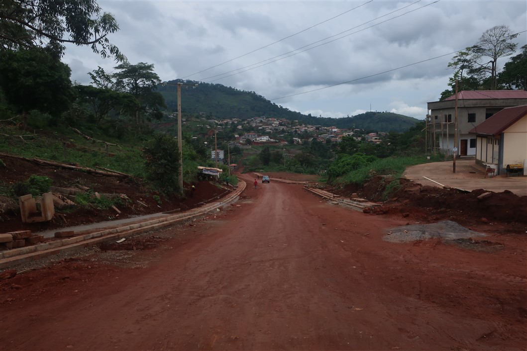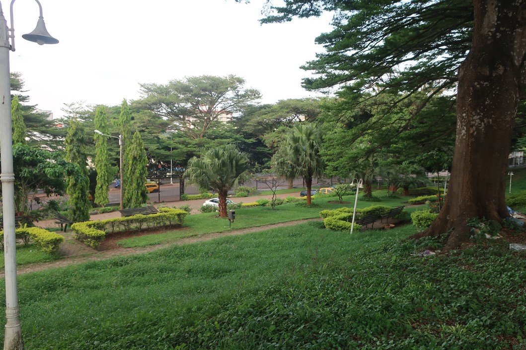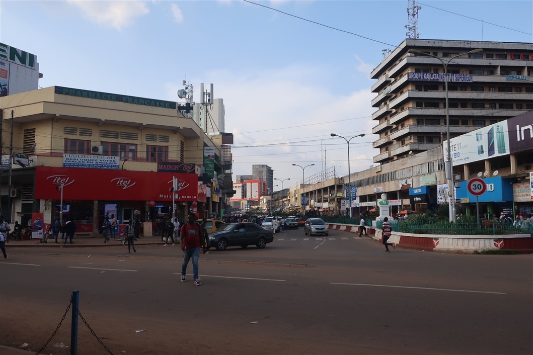 Wenig später machte ich mich auf den Weg in die Innenstadt. Yaoundé, das ist entweder rote Erde mit sattgrünem Blattwerk, oder wie hier im Centre Ville, vibrierende Großstadt mit brutalistischen Fassaden oder unvollendeten Rohbauten. Vom Holzunterstand bis zum Megastadion und Hilton-Hotel beherbergt die Stadt eine große Bandweite an Lebensstandards. Von Kleinkrämern, die Waren feilboten, deren Nützlichkeit sich mir noch nicht erschlossen (Bonbons, Erdnusstüten und anderen Kleinkrams), bis geschäftigen Businessleuten mit blitzsauberen Lederschuhen, wohnen die unterschiedlichsten Menschen in Yaoundé.