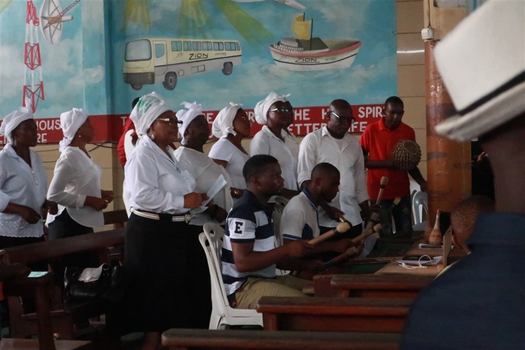 Im linken Seitenschiff begleiteten Trommler und passionnierte Sängerinnen die Zeremonie. Es folgten Gebete und Spendenaufrufe, alles ermöglicht durch an den Holzstützen hängenden und leise vor sich hinsummenden Ventilatoren. Auch hier wurde wieder ein Vertrag à la „Please sign here for eternal happinness“ unterzeichnet, getanzt, umarmt (Publikum) und geküsst (Brautpaar). Nach zwei Stunden des Himmelhoch Jauchzens wurde es langsam Zeit für die nächste Pause und natürlich für neue Outfits.
