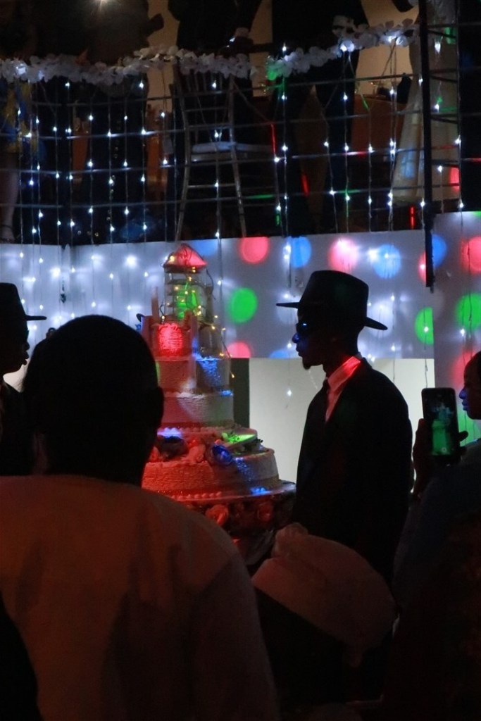 Das Programm ging weiter. Die Jazzband, mitsamt dem genialen Schlagzeuger, der Bruder der Braut, war atemberaubend, der Luftkaratekämpfer mit seinen reflexartigen Ausrufen zum Wegwerfen komisch und die Torte höher als lecker. Später wurden noch einige mehr oder minder verborgene Talente bei einem Tanzwettbewerb an die Oberfläche getragen. Am witzigsten war jedoch ein Wettbewerb unter den Brautjungfern, die in „Stuhltanz“-Manie von dem Moderator vorgegebene Gegenstände aus dem Publikum besorgen mussten. Diejenige, die als Letzte mit diesem Gegenstand zurückkam, flog raus und es ging in die nächste Runde, bis nur noch eine übrigblieb. Meine Highlights: Socken, Perücken und natürlich Kondome. All die gewöhnungsbedürftigen Unterschiede hin oder her, an die Unverkrampftheit der Kameruner könnte ich mich gewöhnen.