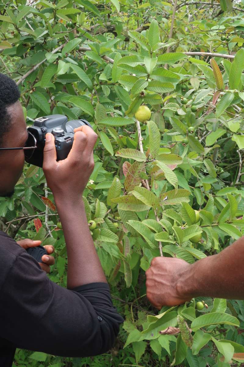 Bevor man die über 300 Stufen hinauf zum Krater steigt, führt einen der nicht ausgeschilderte, aber dennoch gut zertrampelte Weg durch saftig grünes Grasland, in dem das aufmerksame Auge hier und dort vor allem weiter entfernt vom Pfad an den Ästen baumelnde Guaven findet. Irgendwie habe ich mir diese deutlich größer vorgestellt, da sie auf Multivitaminsaftpackungen immer so großgezogen werden, dass ich sie in eine Kategorie mit Orangen und Äpfeln packte.