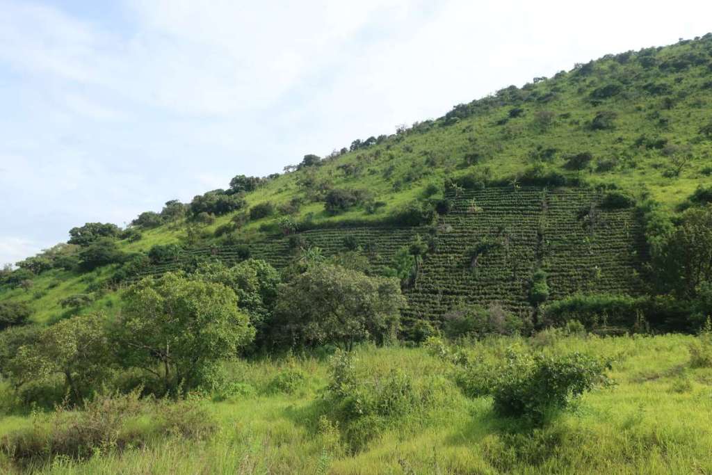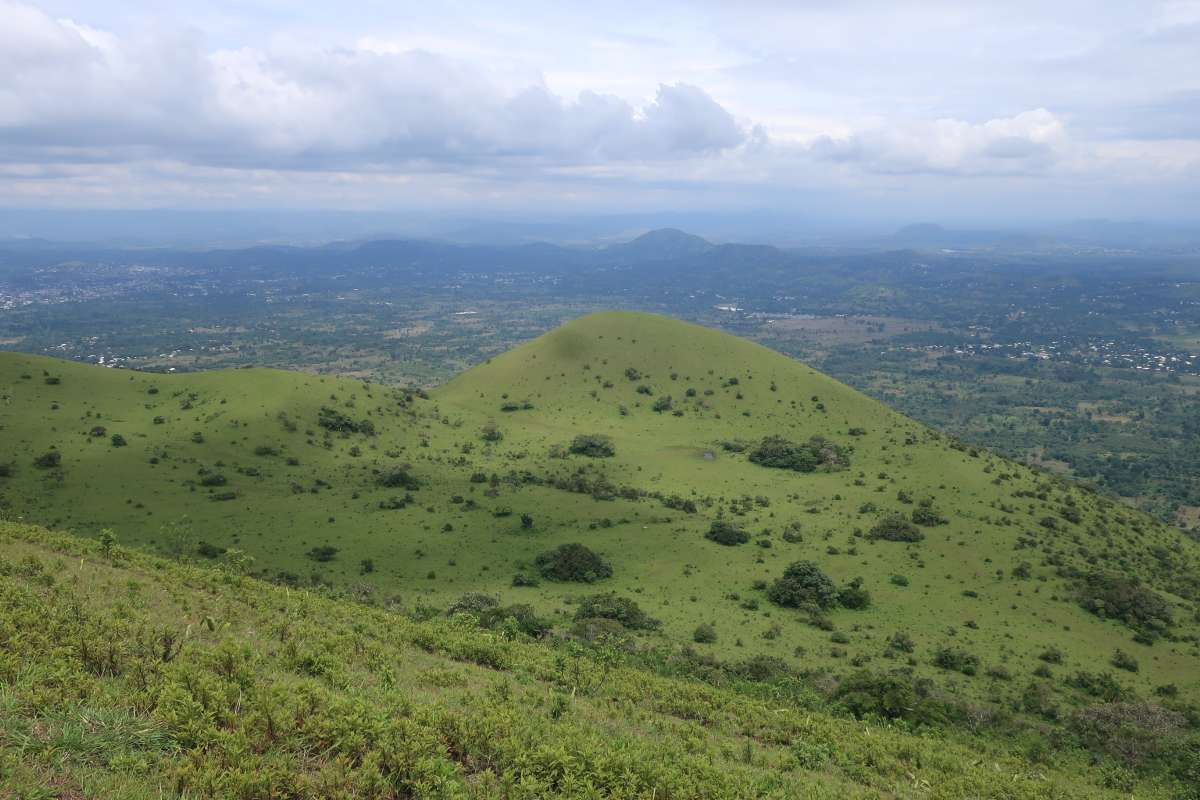 War alles Testosteron im See versunken, konnte die Wanderung fortgesetzt werden. Wer dachte, mit dem Erklimmen der Stufen den Großteil an Höhenmetern bereits überwunden zu haben, sah sich nun getäuscht: Die alte Ebene war von dem Vorgänger des Wetterbeamtengottes, ein damals unübertroffener Choleriker, so übel zugerichtet worden, dass sie sich noch immer noch nicht von ihren Schwellungen erholt hat. Ganz zur Freude des menschlichen Auges, welches in dieser Hügellandschaft hervorragende Fotomotive findet. Es ging also noch mal einen der Hügel hinauf. Von hier, dem höchsten Punkt, sah man, dass die gesamte Catena so gut wie baumlos war – außer an den besagten Steilklippen…versteh doch einer die Bäume!