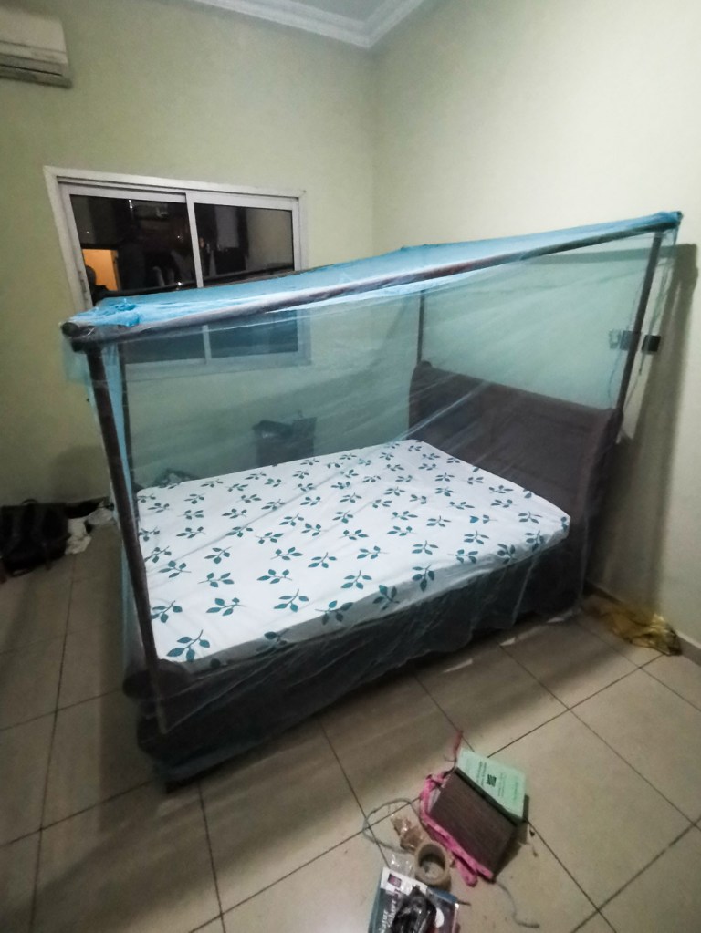 Nachdem ich mich gerade noch davon abhalten konnte, eines der Plüschtiere zu kaufen, kehrte ich nach Hause zurück und baute mein Bett zu einem Moskito-Resistenten Raumschiff aus. Wie man sieht, habe ich mich sichtbar in den kamerunischen Alltag integriert.
