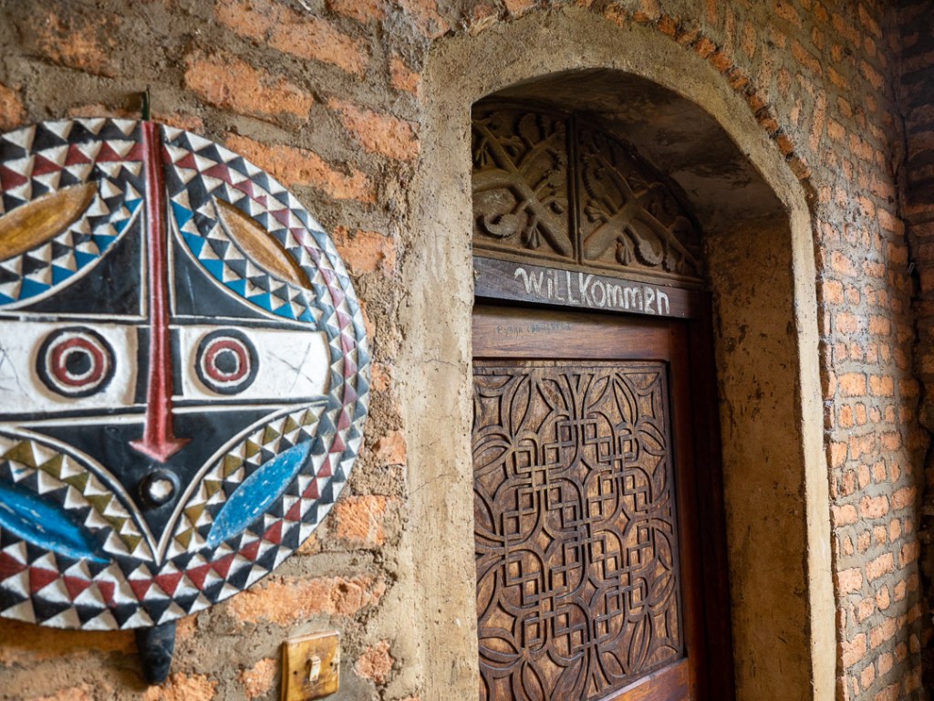 Wir nähern uns dem königlichen Palast Foumbans, der auf den für Westkamerun so typischen Hügeln des Hochplateaus erbaut wurde. Er erregt nicht etwa aufgrund seiner Größe, sondern vielmehr wegen seiner außergewöhnlichen Architektur meine Aufmerksamkeit. Rote Ziegel, hölzerne Fensterläden und ein Parkplatz vor der Tür: Hier waren augenscheinlich die Deutschen zugegen. Jedoch waren es nicht sie, die diesen Palast 1917 erbauen ließen, sondern der damalige Fon Njoya Ibrahim. Als großer Bewunderer der deutschen Kultur ließ er das Postkartenbild eines preußischen Landguts in den Bauplan einfließen.