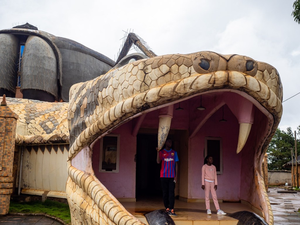 Etwas Geduld benötigte auch die Eröffnung des neuen Museums direkt neben dem Palast. Doch hier scheint sich das Warten gelohnt zu haben. Mit seiner außergewöhnlichen Bauweise von zwei gewundenen Schlangenköpfen als Eingängen und einer Riesenspinne auf dem Dach zieht es mit Sicherheit keine Berliner Teenager an, trägt somit aber umso mehr zur Identität der Bamun bei.