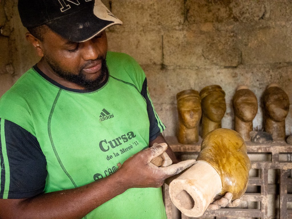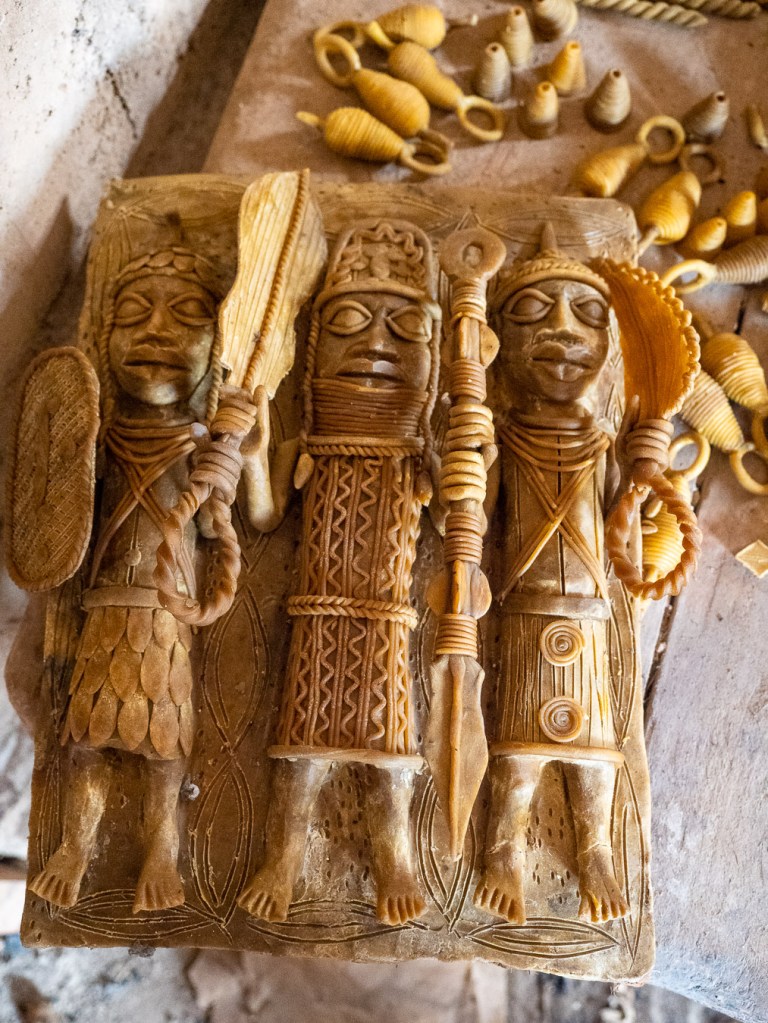 Zwei Männer nahmen uns trotz gedrückter Stimmung an die Hand und erklärten uns, dass früher fast ausschließlich Waffen für den königlichen Hof produziert wurden. Heute liegt der Fokus eher auf dekorativen Elementen für Sammler. Weiterhin aber gilt die Regel: Der Fon wird kostenlos beliefert.