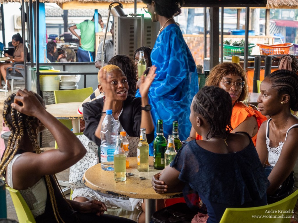 Nach der offiziellen Zeremonie ging es dann in eine Bar in den Außenbezirken Yaoundés. Hier wurde wie immer lebendig gequatscht, gelacht und diskutiert. Unser allseits beliebtes Smalltalk-Thema „Na was machst du so beruflich?“ ist in Kamerun übrigens ein No-Go.