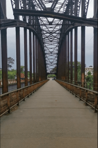 Edéa liegt an den Ufern des letzten noch schiffbaren Abschnitts des Sanaga’s. Ehemalig ein Dorf, entwickelte es sich mit der Ankunft der Deutschen um 1890 zu einem strategischen Posten. Bis heute zeugt ein altes Bauwerk von der deutschen Kolonialzeit: die bogenförmige Stahlbrücke, Symbol der Stadt. Während diese mittlerweile von einer breiteren aber weniger imposanten Brücke ersetzt wurde, hat Edéa ihren Status als Knotenpunkt der Republik bewahrt. Heutzutage keuchen hunderte hupende Laster mit schweren Baumstämmen beladen in Richtung Douala Hafen. Auch ihren Status als erste elektrifizierte Stadt Kameruns „Stadt der Lichter“ und ihre Aluminiumfabrik verdankt die Stadt dem ewig fließenden Sanaga.