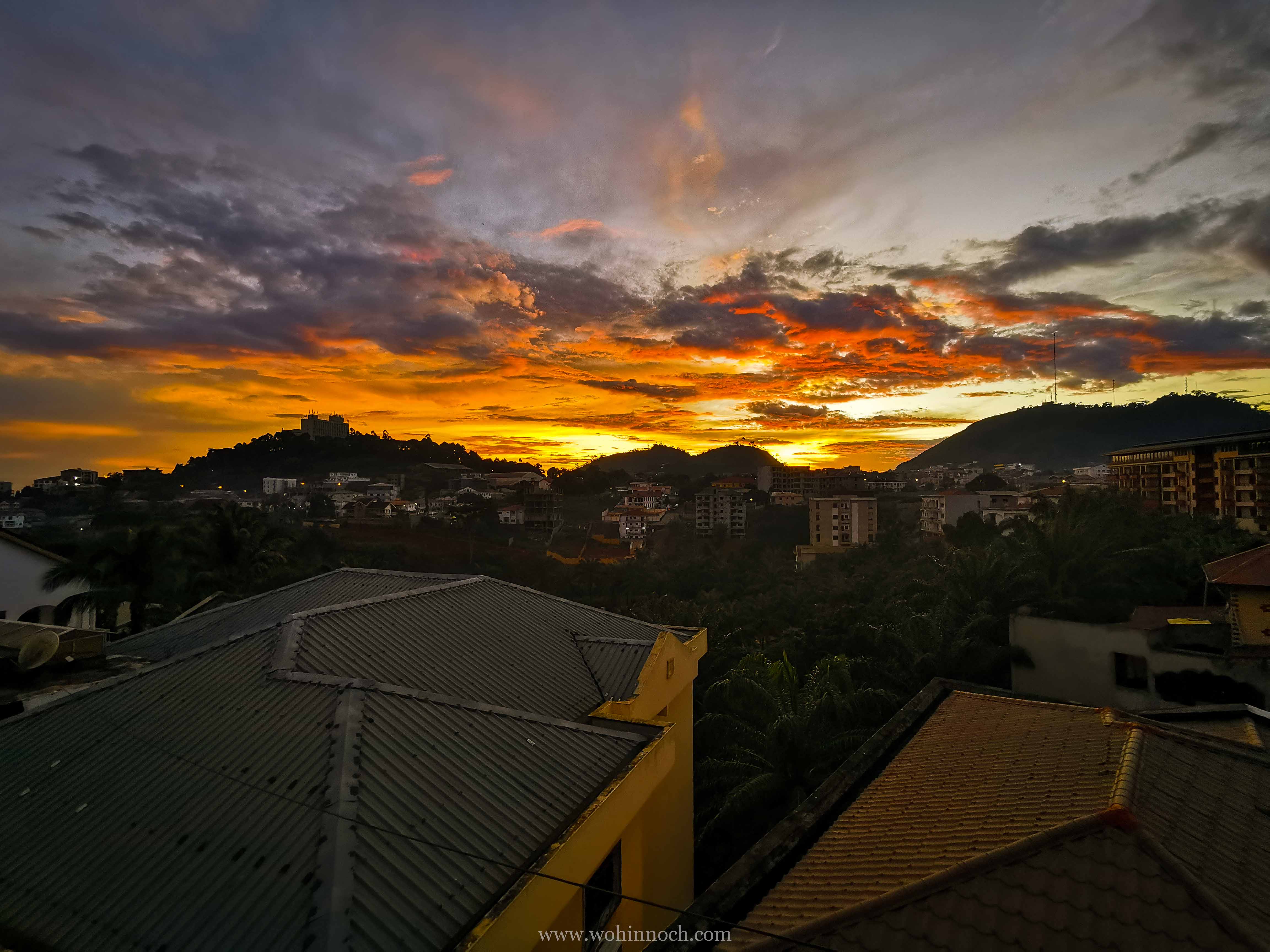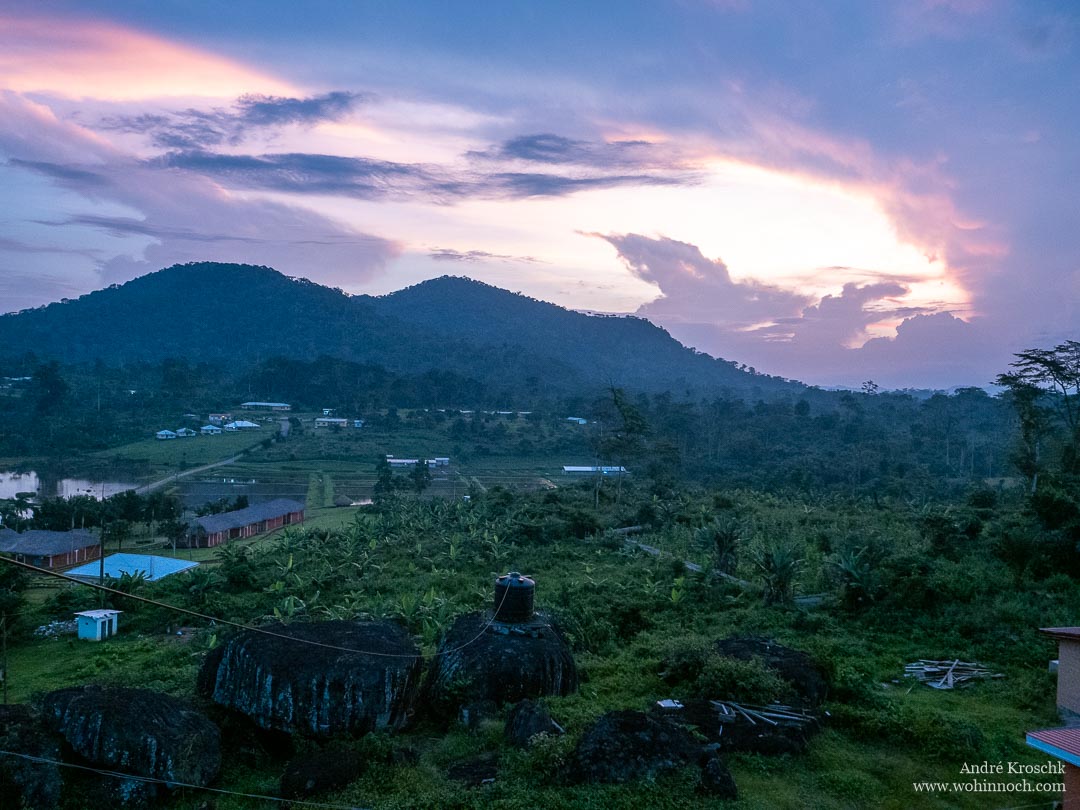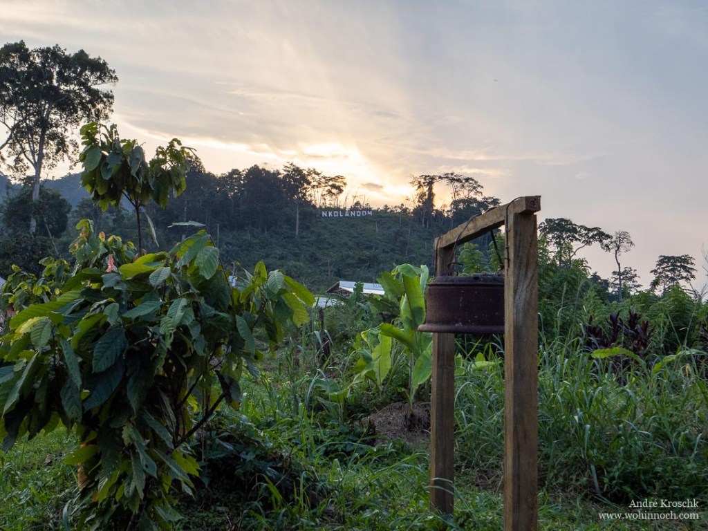 Ich habe den Aufenthalt in Nkolandom als einen sehr ruhigen und erholsamen wahrgenommen. Als Ausflugsziel für ein verlängertes Wochenende eignet er sich meiner Ansicht nach perfekt, zumal er nicht zu überteuert ist, wie einige andere Alternativen. Aber ich muss mir nach meinem zweitägigen Aufenthalt kein Urteil über die Existenzberechtigung dieses Ortes erlauben, möchte dafür lieber von der Aussichtsplattform auf die Hügelkette schauen, wo in Hollywood-Manier der Schriftzug „N K O L A N D O M“ thront.