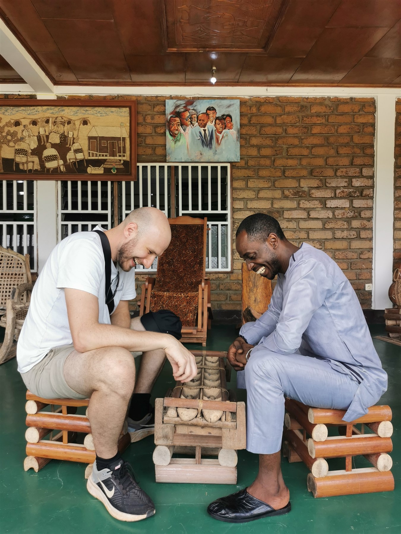 Wir erkundeten die hitzebeständigen Häuser der Sahelvölker, tauchten ein in die vom Meer geprägte Welt der Sawa, nahe des heutigen Douala, lernten über die Symbolik der Bamoun und Bamiléké im Westen und spielten schließlich eine Partie Songo, Lieblings-Brettspiel der Beti, hier im Zentrum und Süden Kameruns. Über das Brettspiel Songo, welches bei Dussmann im Spieleregal Kalaha heißt, habe ich übrigens auch eine Folge Kamerun in Kurz geschrieben: Hier.