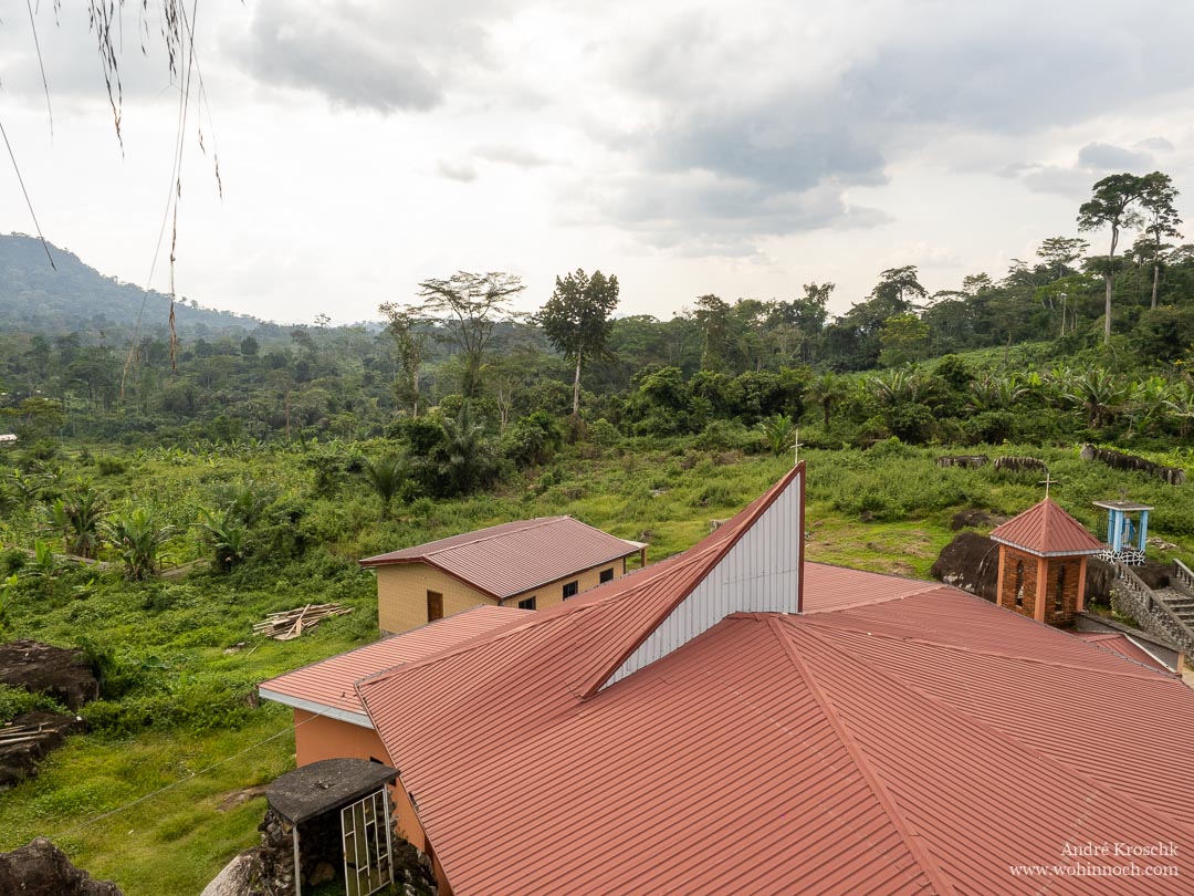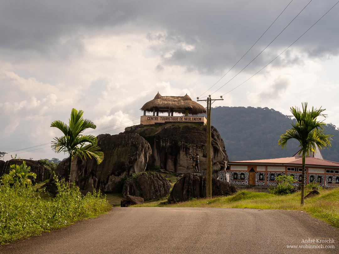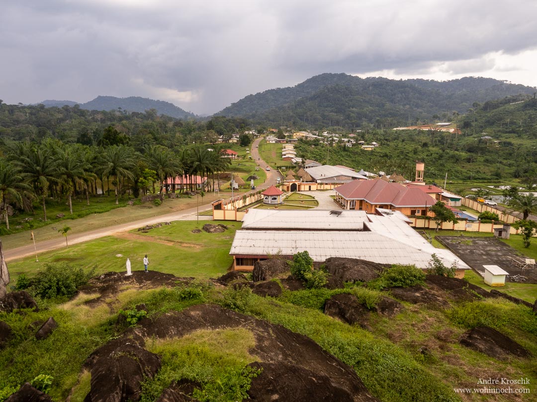 Die Ortsschilder, ein Werbebanner und beleuchtete Engelsfiguren, die uns von schroffen Felsen zuwinkten, erinnern mich an die Ankunft in einem österreichischem Ski-Ort. Doch ich bin hier nicht in den Alpen, sondern in Nkolandom. Einem fast erstaunlich gut ausgebauten und gepflegten Touristenort inmitten der waldigen Bergketten Südkameruns.