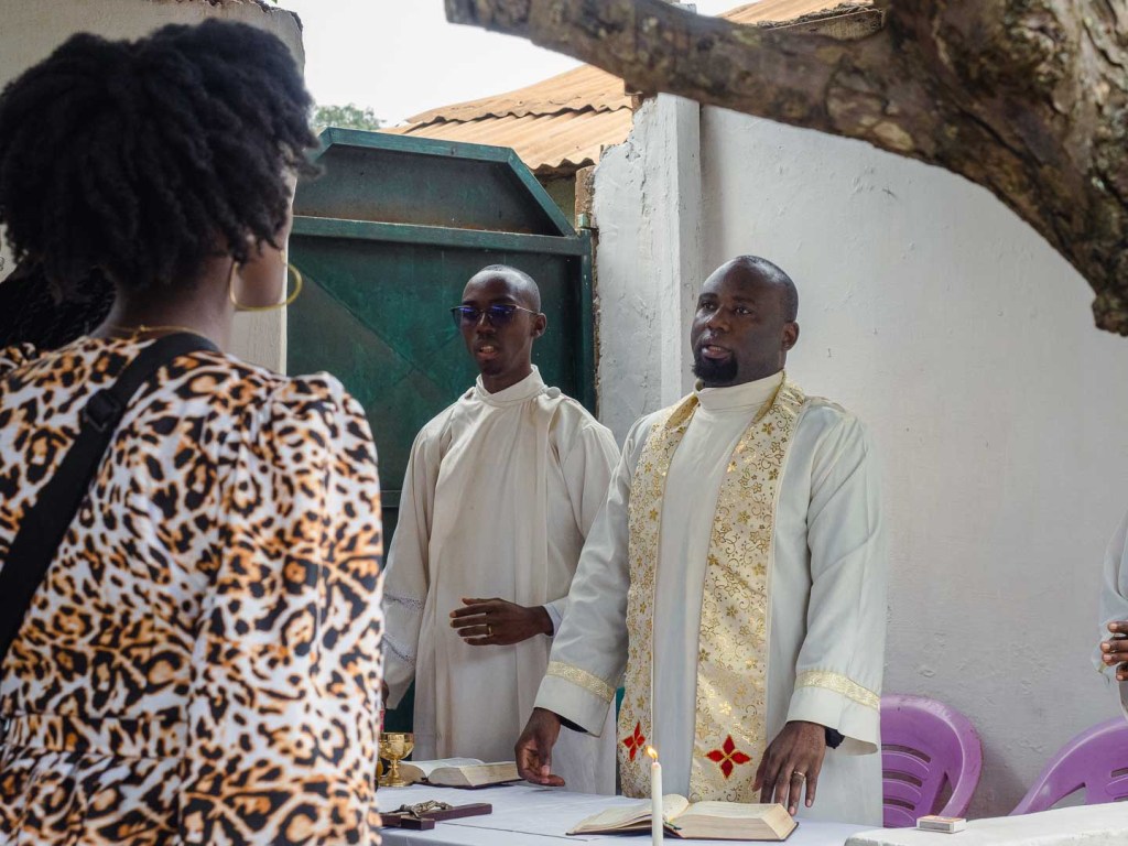 Lass es um fünf gewesen sein, als ich das Moskitonetz wieder unter der Matratze einspannte und meine nur noch schwach glimmenden Augenlider schließen konnte. Lange währte der Zustand der Ruhe jedoch nicht. Der nächste Termin im Kalender sah den Besuch der Sonntagsmesse um elf Uhr vor. Um meine schlechte Laune von gestern Nacht wieder gut zu machen, unternahm ich auf den harten Holzbänken keine Anstalten und hörte aufmerksam dem Kirchenchor zu, der aus vollen Kehlen seine Lieder in das Kirchenschiff donnerte. Die selben heiseren Kehlen, wohlgemerkt, die gestern noch zur medizinischen Notversorgung mit warmem Bier und Palmwein befeuchtet wurden.