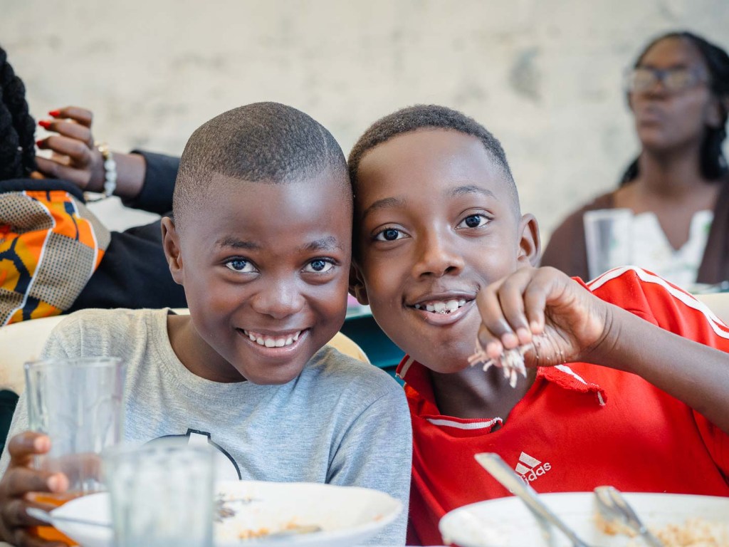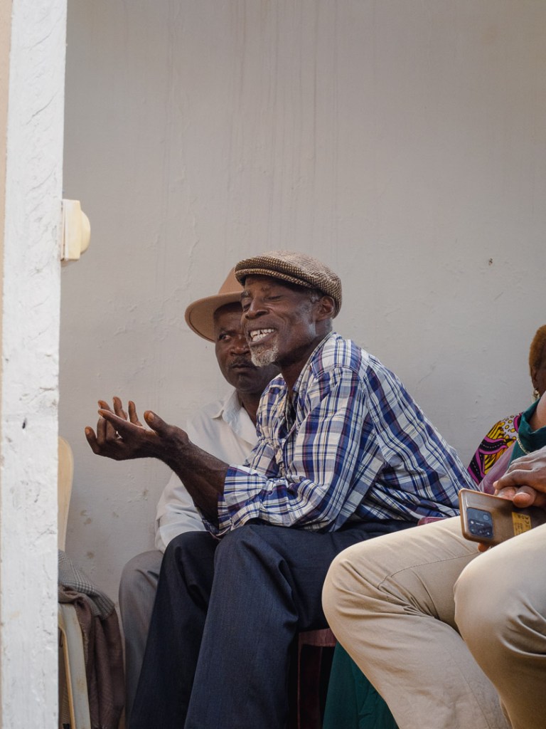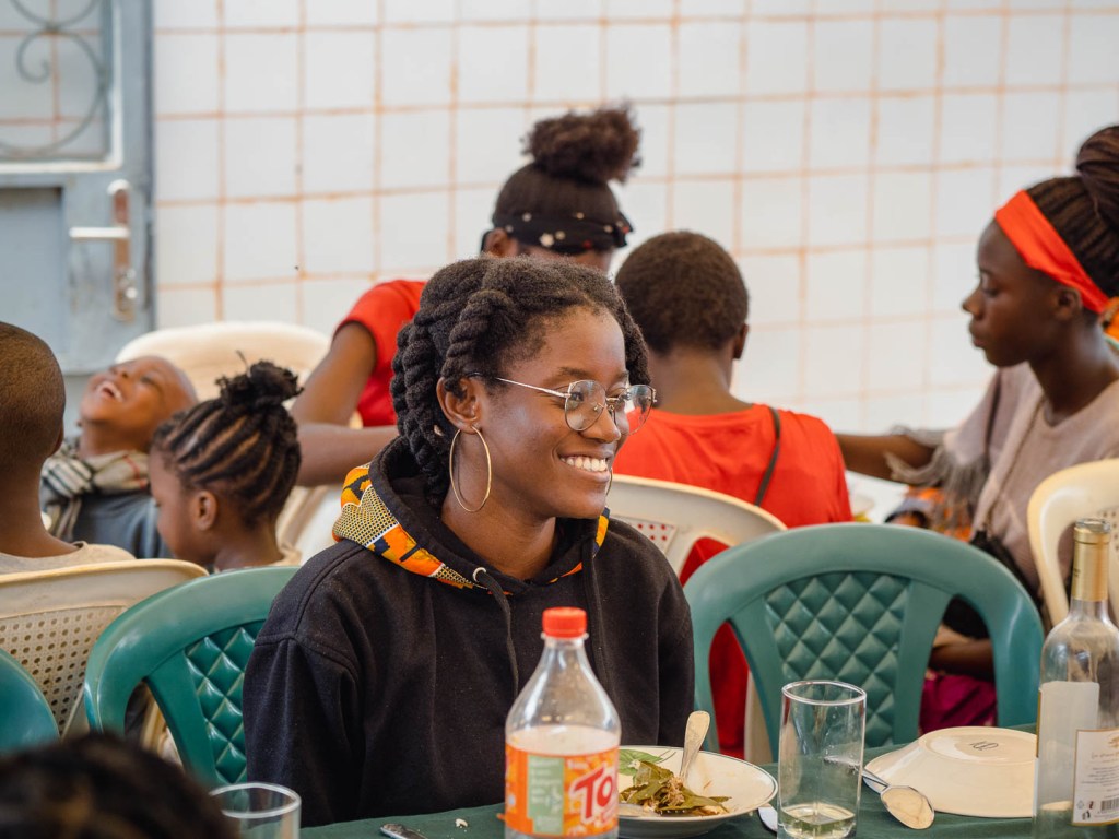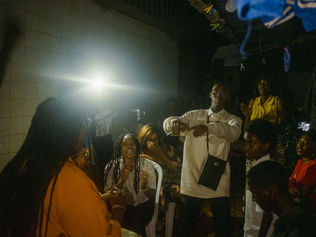 Unsere Mägen waren voll und die milde Sonne hinter den Wellblächern verschwunden. Es fehlte nur noch eines: Tanzen. Doch improvisieren war angesagt, da der Strom gerade weg war. An solche Umstände gewöhnt, schnappten sich die Kinder kurzerhand die Plastikstühle, klemmten sie sich zwischen die Beine und begannen, darauf zu trommeln. Wir formierten uns tanzend im Kreis, während die Jugendlichen dafür sorgten, dass jeder – ob Baby, Teenager oder Großmutter – einmal in die Mitte gezogen wurde, um eine besondere Tanzbewegung vorzuführen. Als unter großem Gelächter alle einmal an der Reihe waren, blitzten plötzlich die Glühbirnen auf, und die Lautsprecher erwachten mit lauter Musik zum Leben. Die Feier war gerettet!