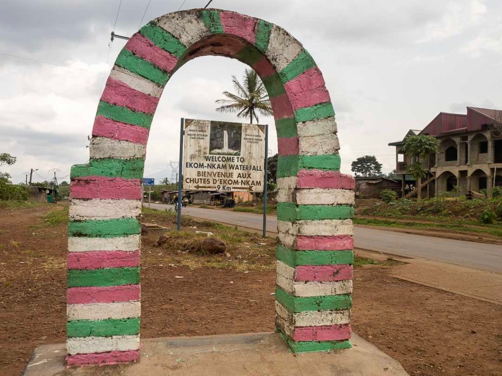 Die Ekom Nkam Wasserfälle liegen exakt auf der Grenze zwischen den kamerunischen Regionen Littoral und Westen. Besser gesagt: Sie sind die Grenze. Der Fluss Nkam, der in den Regenzeiten von September – Oktober und April – Mai besonders viel Wasser trägt, trennt beide Regionen und lässt sich daher gut von Douala (5h) oder Bafoussam (3h) mit dem Auto erreichen. Von Yaoundé sind es ca. 7 Stunden. Wir waren im März zu viert mit einem Fahrer (pro Tag ca. 50€ + Sprit) unterwegs und hatten für unser langes Wochenende in Westkamerun in der zurückgezogenen, meditativen NoNeNa Mountain Range übernachtet (+237 699 90 41 85). Von dort sind es ungefähr zwei Stunden mit dem Auto. Meinen Aufenthalt in der Range habe ich vor einiger Zeit im Blog geschildert: Hier.