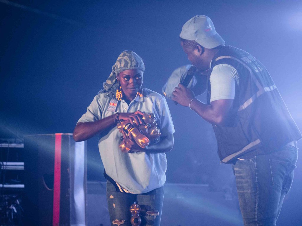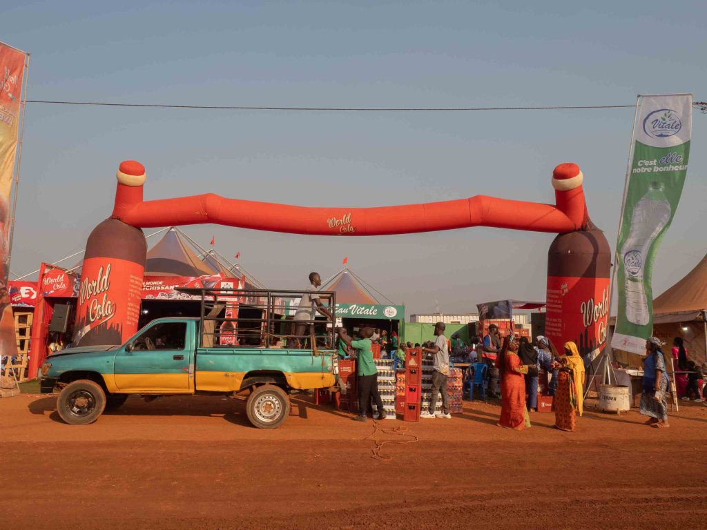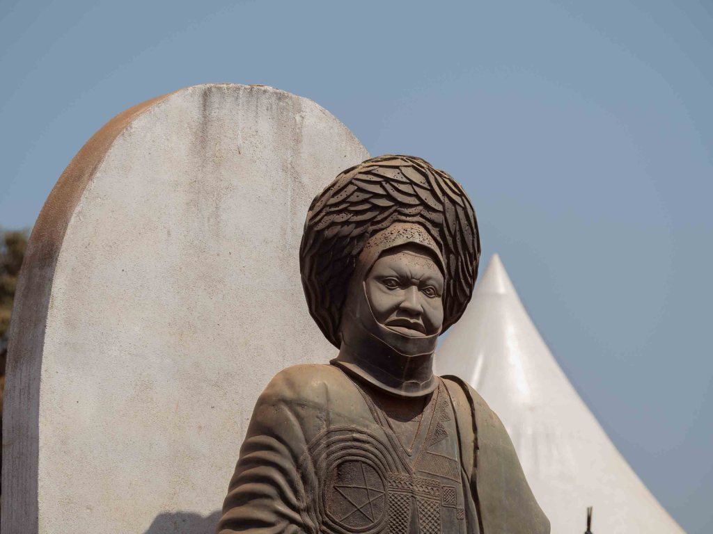 Am Nachmittag erreichen wir das Festivalgelände auf einer großen Freifläche etwas außerhalb von Foumban. Und siehe da: Dank unserer grünen Bändchen kommen wir kostenlos hinein! Wir schlendern durch die zahlreichen Buden und bestaunen das vielfältige Angebot: T-Shirts, Armbänder, traditionelle Medizin und kunstvoll gearbeitete Holz- und Bronzewaren. Foumban ist seit jeher ein Zentrum für Handwerks- und Schmiedekunst, und das Festival bietet den Künstlern eine perfekte Bühne, um ihre Werke ins Schaufenster zu stellen.