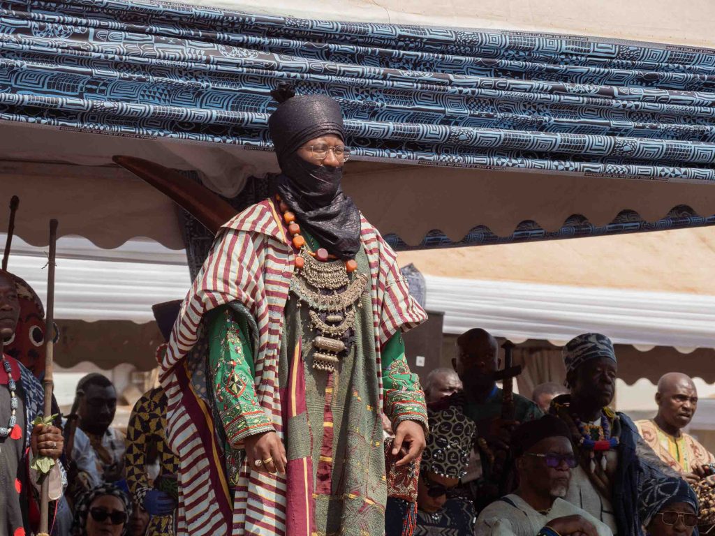 Flankiert von seiner Ministergarde, der Nji Fon Fon, betritt Nabil Mbombo Njoya den Festplatz. Mit seinen 31 Jahren ist er nicht nur Alumni der St. John’s University in New York, sondern auch der zwanzigste Monarch des Königreichs der Bamoun. Er trägt ein rot-weißes Gewand, unter dem ein smaragdgrünes, kunstvoll besticktes Hemd hervorleuchtet. Schwere Ketten schmücken seinen Hals, und sein Kopf ist mit einem turbanähnlichen, schwarzen Schleier bedeckt. Langsam schreitet er über den roten Teppich und nimmt neben seiner Mutter auf dem königlichen Thron Platz. Die Stimmung ist überraschend ruhig, fast angespannt. Das Urteil des Volkes steht noch aus.