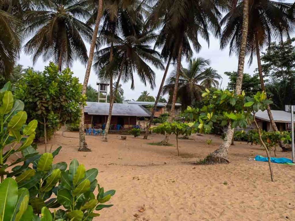Besonders überrascht hat mich der Tipp zu Ebodjé. Dieses kleine Fischerdorf liegt fernab gut ausgebauter Straßen (mehr zu meiner abenteuerlichen Anreise findest du hier), mit sporadischer Netz- und Stromversorgung. Das Wasser kommt aus dem Brunnen. Die einzige Unterkunft ist eine ECO-Lodge – zwei oder drei einfache Holzhütten direkt am Strand, wo du völlig ungestört bist. Wenige Hundert Meter entfernt schützt eine NGO Meeresschildkröten, die hier ihre Eier legen. Bei unserem Besuch hatten wir sogar das Glück, eine Schildkröte zu sehen! Dieser Ort ist für mich ein absoluter Geheimtipp. Doch Vorsicht: Die kleine Lodge ist oft zwei Monate im Voraus ausgebucht. Den Kontakt findest du in meinem Ebodjé-Eintrag.“
