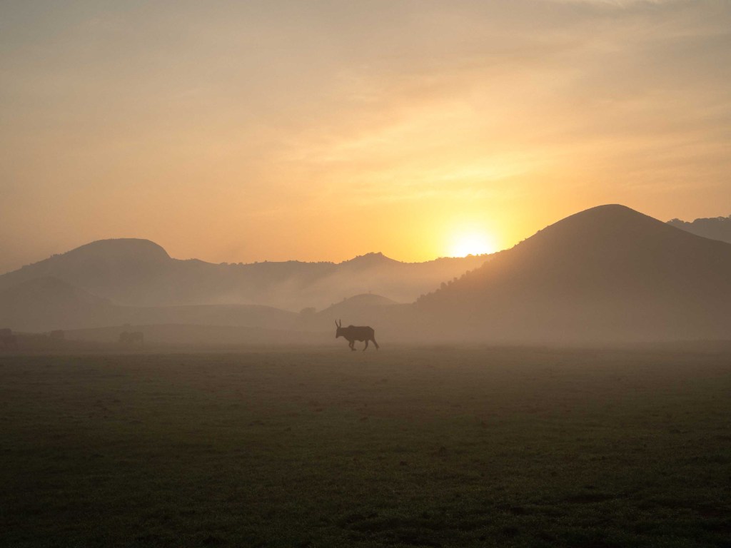 Der Morgen stand dem Abend in nichts nach. Aufsteigende Nebelschwaden wurden vom tiefen, klaren Sonnenlicht durchbrochen. Die Rinder grasten bereits wieder, und die Sicht wurde mit jeder Minute besser. Ein sonniger Tag kündigte sich an.