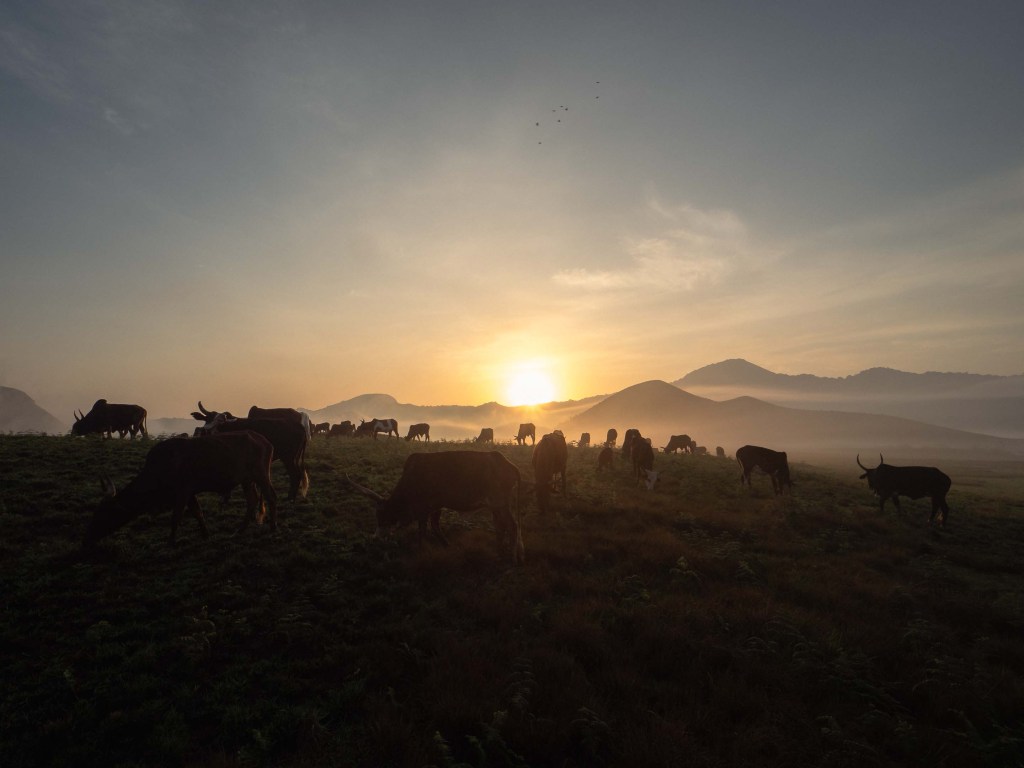 Nach zwei Stunden gelangten wir in ein Bergdorf. Eingebettet in sattgrüne Wiesen, die sich über steile, aber nie schroffe, Hügel zogen, begegneten uns zuerst Hühner, Schafe und Zebus. Doch wer lebt hier?