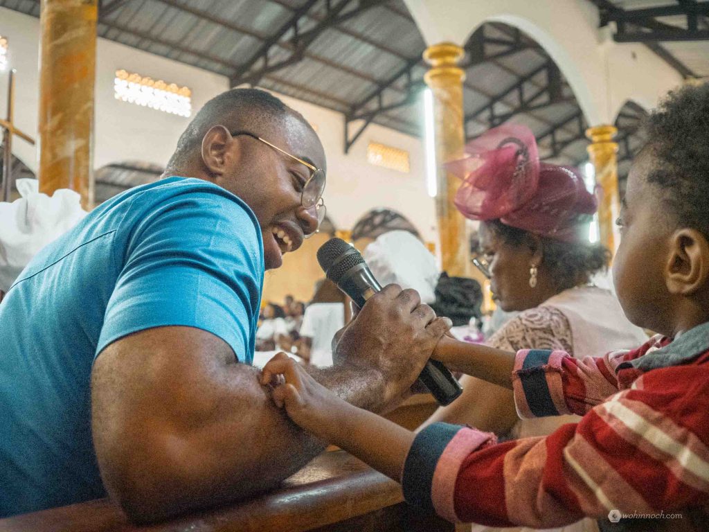 Wie eine Messe abläuft muss ich euch nicht erklären. Aktuell sammelte die Gemeinde Geld für den Bau eines neuen Pfarrhauses. Ein Plakat vor dem Altar, das eine schicke Villa skizzierte, wirkte auf mich etwas befremdlich. Es wurden erst die Frauen, dann die Männer und schließlich die Kinder zum Spenden gebeten. Fromme Eltern zahlten also dreifach. Mit Taufen und Kommunion gab es heute aber auch das volle Programm.